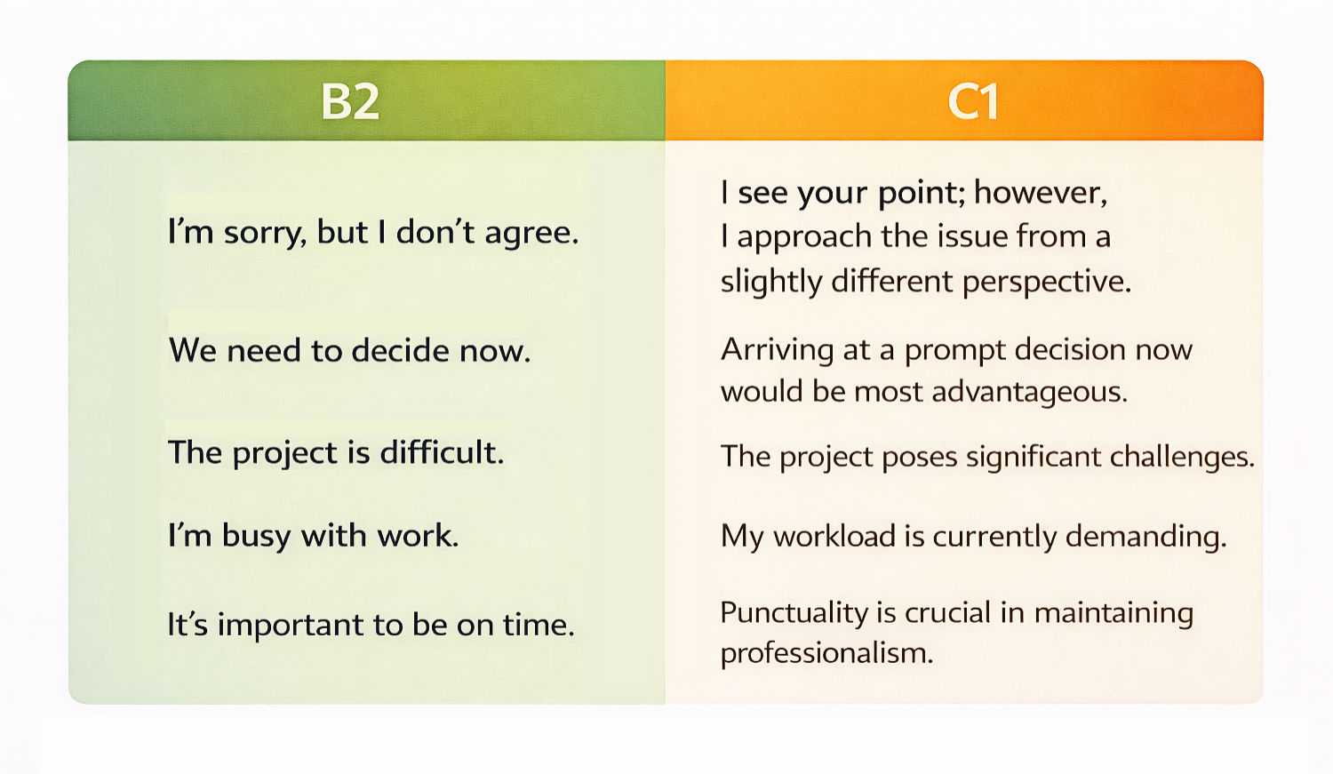 C1–C2 → Etkileyici ve doğal dil